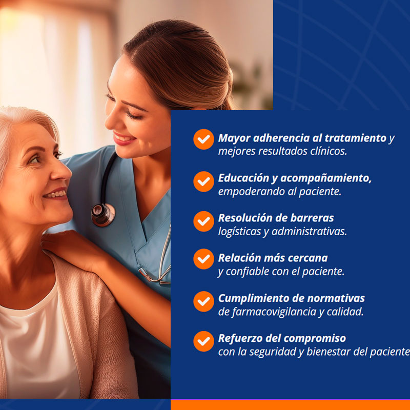 Son múltiples los beneficios para un laboratorio farmacéutico el contratar un programa de soporte a pacientes (PSP). Un PSP ayuda a comprender mejor los tratamientos y a seguir indicaciones médicas, lo que resulta en una mayor adherencia y mejores resultados clínicos. Proporciona educación sobre la enfermedad y el tratamiento, empoderando a los pacientes a manejar su salud de manera efectiva. Además, ayuda a los pacientes a superar obstáculos, como problemas administrativos o logísticos, facilitando la continuidad y el acceso a las terapias.